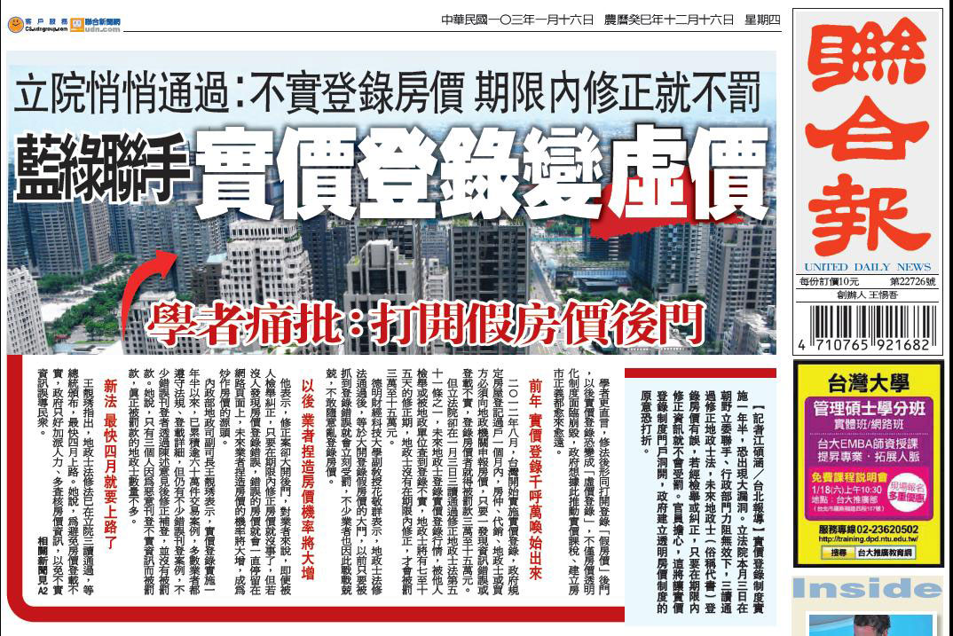 「藍綠聯手 實價登錄變虛價」獨家報導