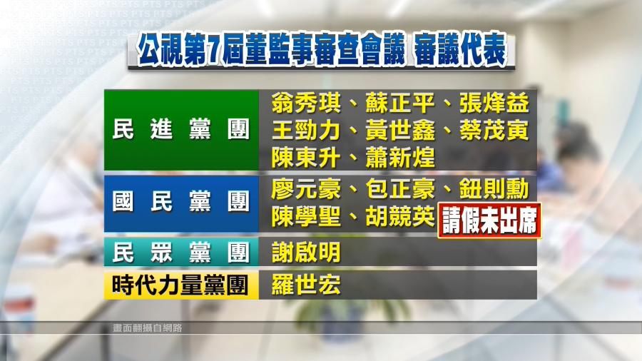 影片為去(2020)年 11 月 9 日審查公視董監事補選會議之報導,影片中,文化部長李永得以及審查委員均發表看法。下方三張來自影片的截圖分別為:圖1:公視第 7 屆審查委員各黨團代表名單|圖2:國民黨代表不出席事由|圖3:公視董監事審查門檻。影:公視新聞網 (CC BY-NC-SA 3.0 International)