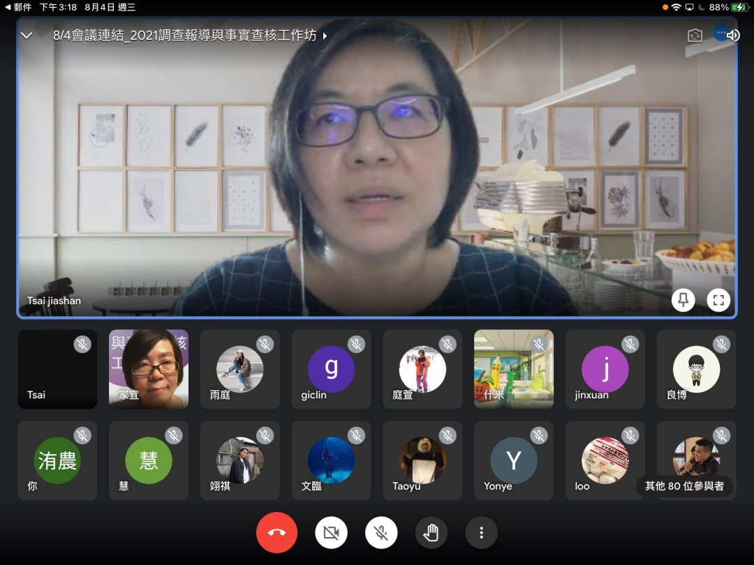 - 「2020 假新聞與事實查核工作坊」台北場 No. 5/事實查核中心X資策會X資管所XGoogleXFacebookX社區大學X假新聞清潔劑|事實查核報告以外的全民行動(上)