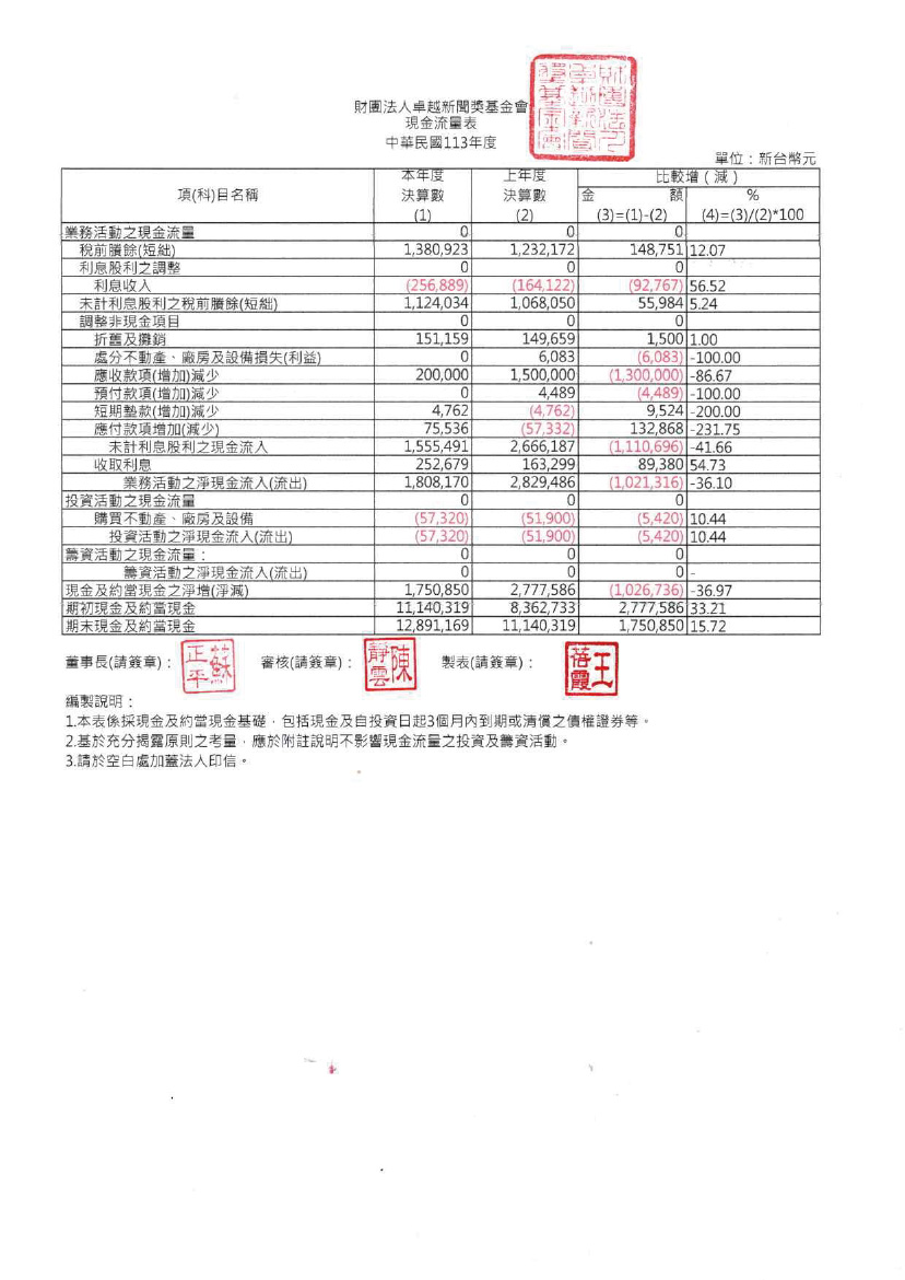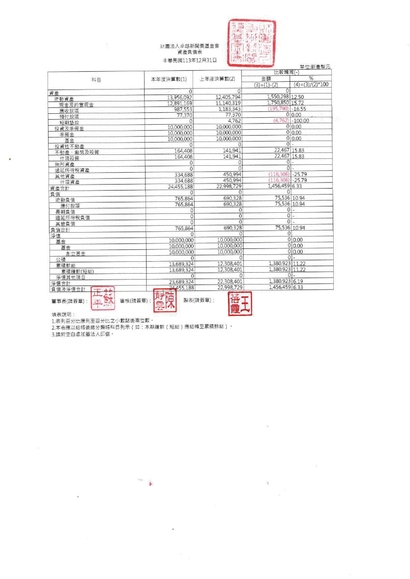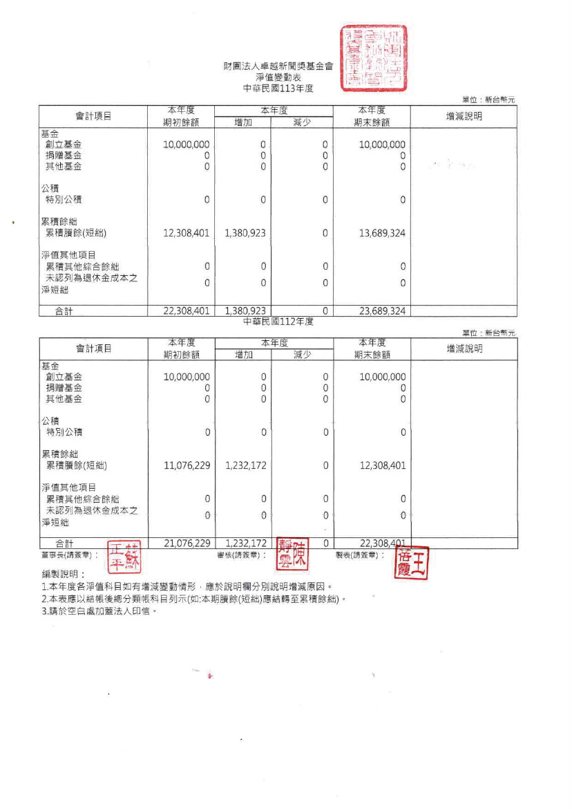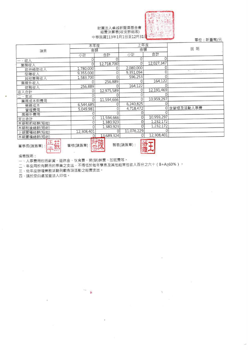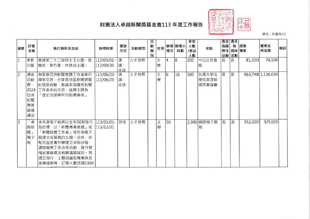 113年度工作報告及財務報表
